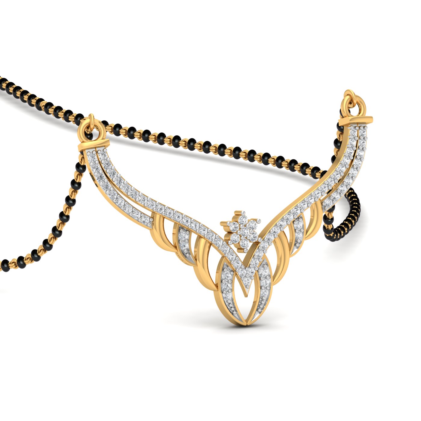 Diamonds are the most precious stones in the world, and no one can deny that. The Omisha Diamond Mangalsutra is a perfect way to show your love for your partner! Diamonds are forever. This statement is true for the diamond mangalsutra - the finest diamonds crafted in a curving design. An elegant embodiment of pure love, this Mangalsutra is sure to make any special occasion memorable! On your wedding day, on your anniversary, with your partner's ring at hand - there are so many reasons why you should cherish this exquisite piece. It will last for generations as a perfect gift or as a symbol of pure love that can't be broken.
